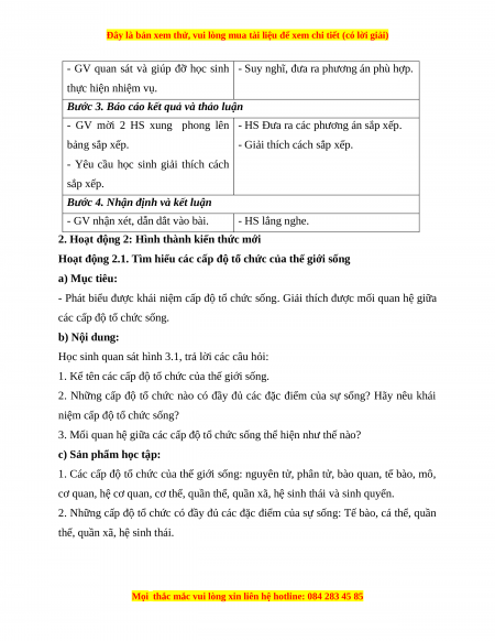 Hoạt động 2.1. Tìm hiểu các cấp độ tổ chức của thế giới sống a) Mục tiêu: