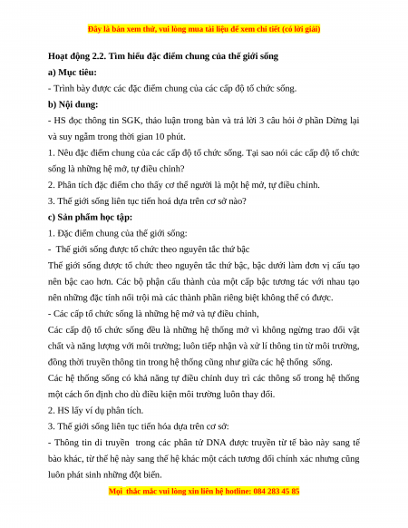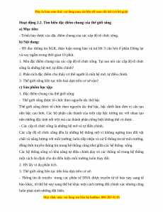 hỏi để tìm hiểu về các cấp độ tổ chức của thế giới sống cũng như đặc điểm chung