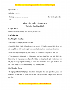 - Nêu được khái niệm các phân tử sinh học trong tế bào.