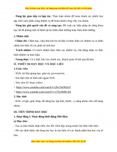 - Năng lực tự chủ và tự học: Tìm kiếm thông tin, đọc sách giáo khoa, quan sát