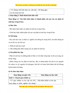 - Trình bày được thành phần cấu tạo của phân tử sinh học trong tế bào. b) Nội dung: