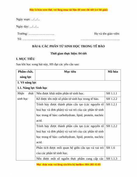 BÀI 6: CÁC PHÂN TỬ SINH HỌC TRONG TẾ BÀO