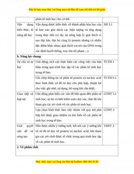 về các phân tử sinh học. 2. Về phẩm chất