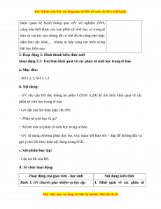 Giáo án Sinh học 10 Bài 6 (Chân trời sáng tạo): Các phân tử sinh học trong tế bào