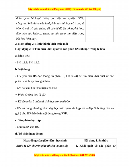 Nêu được khái niệm phân tử sinh học. SH 1.1.1