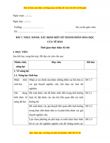 BÀI 7. THỰC HÀNH: XÁC ĐỊNH MỘT SỐ THÀNH PHẦN HÓA HỌC CỦA TẾ BÀO