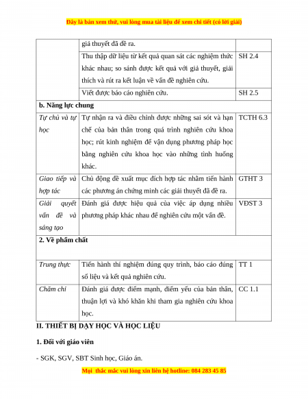 II. THIẾT BỊ DẠY HỌC VÀ HỌC LIỆU