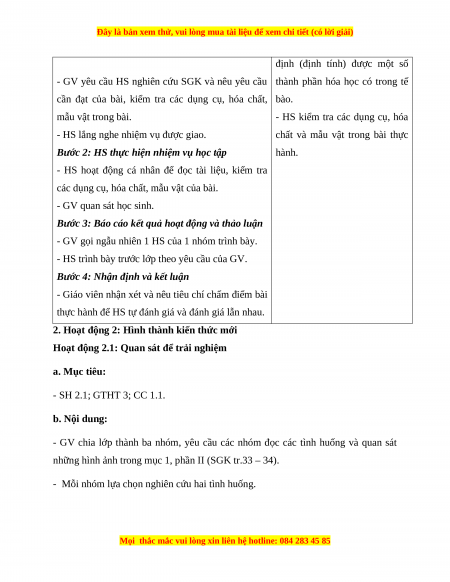 Hoạt động 2.1: Quan sát để trải nghiệm a. Mục tiêu: - SH 2.1; GTHT 3; CC 1.1. b. Nội dung: