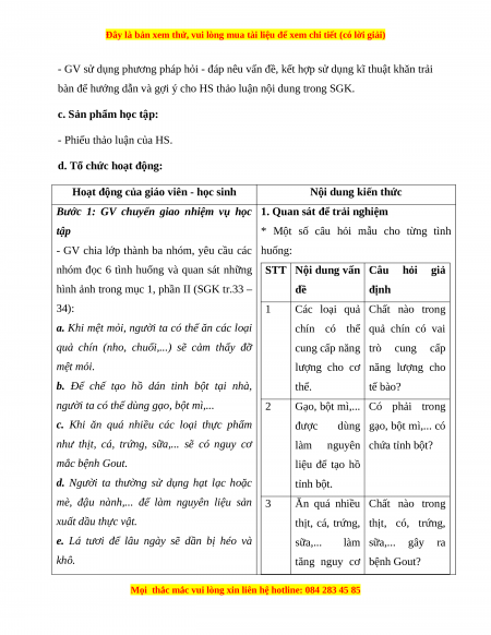 bàn để hướng dẫn và gợi ý cho HS thảo luận nội dung trong SGK.