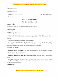 học tập số 1: Đặc điểm chung của tế bào nhân sơ.