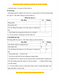 Phiếu học tập số 1 Đặc điểm Có Không Màng nhân Kích thước nhỏ