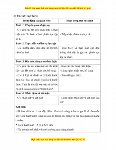 - Năng lực giao tiếp và hợp tác: Phân công và thực hiện các nhiệm vụ cá nhân, nhóm.