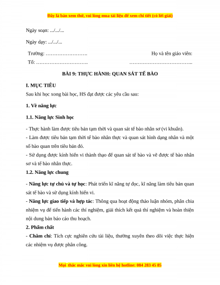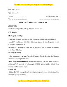 Giáo án Sinh học 10 Bài 9 (Kết nối tri thức): Thực hành quan sát tế bào