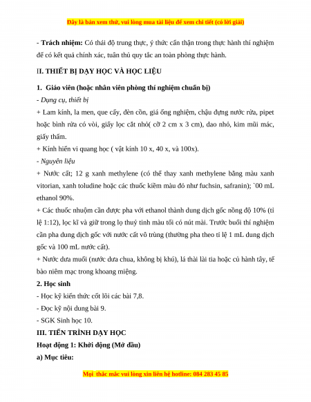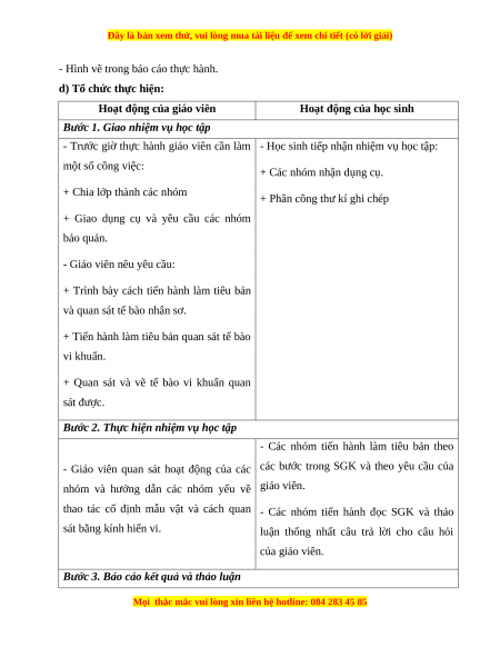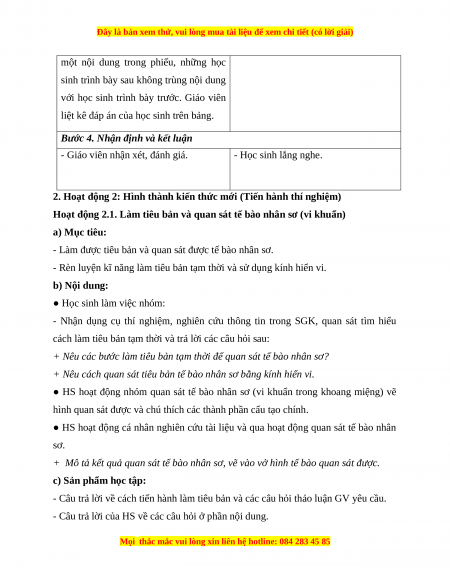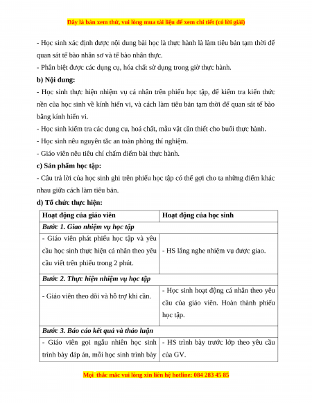 - Rèn luyện kĩ năng làm tiêu bản tạm thời và sử dụng kính hiển vi. b) Nội dung: