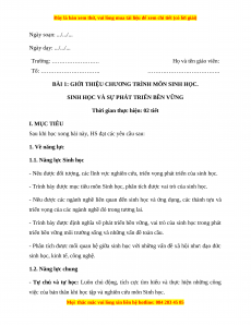 BÀI 1: GIỚI THIỆU CHƯƠNG TRÌNH MÔN SINH HỌC.