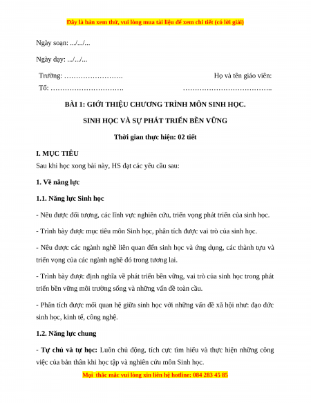 Bộ giáo án Sinh học 10 Cánh diều đã cập nhật đủ Cả năm.