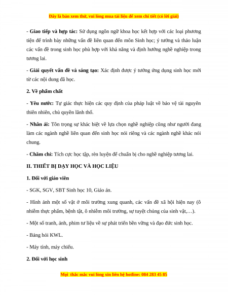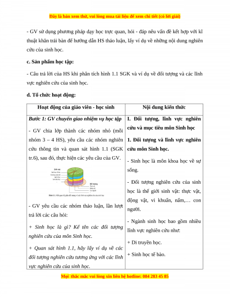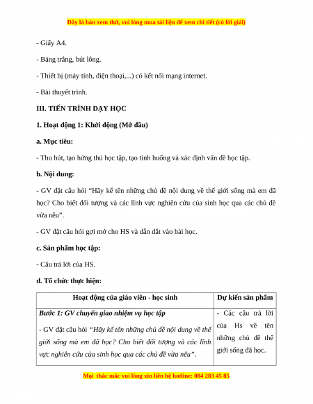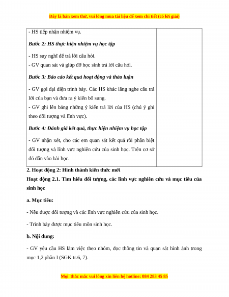 - Trình bày được mục tiêu môn sinh học. b. Nội dung: