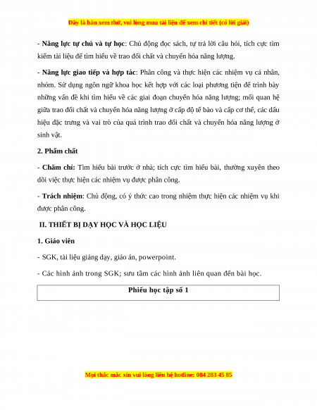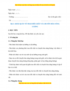 - Phân tích được vai trò của trao đổi chất và chuyển hóa năng lượng đối với sinh vật. 1.2. Năng lực chung