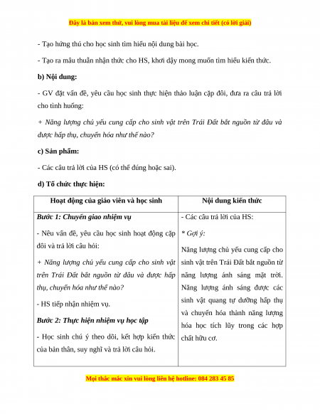 - Tạo ra mâu thuẫn nhận thức cho HS, khơi dậy mong muốn tìm hiểu kiến thức. b) Nội dung: