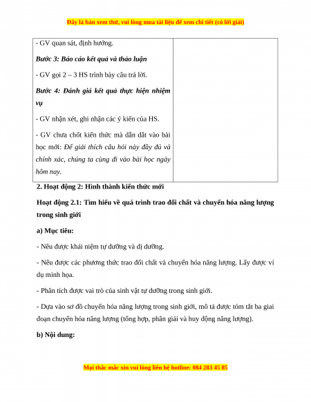 Hoạt động 2.1: Tìm hiểu về quá trình trao đổi chất và chuyển hóa năng lượng