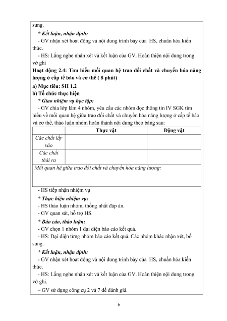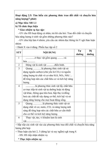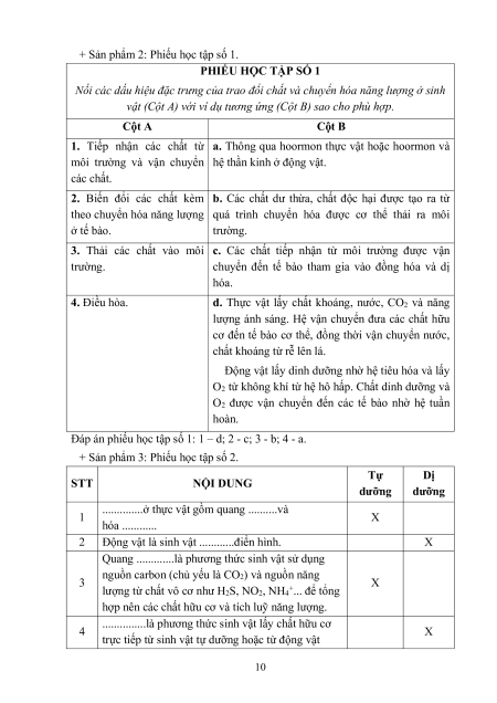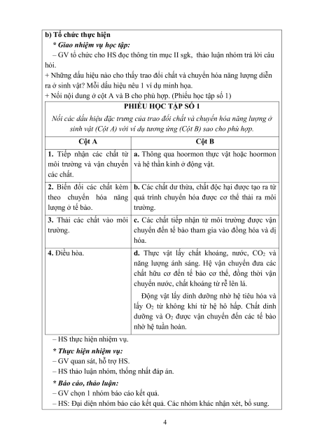 lớp 11 dựa trên việc tìm hiểu về trao đổi chất và
