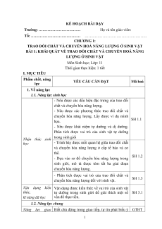 ta sẽ cùng đi tìm hiểu Bài 1: Khái quát về trao đổi chất và chuyển hóa năng