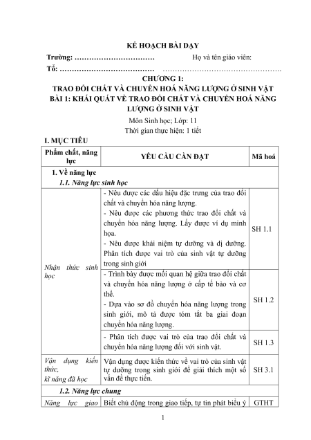 chuyển hóa năng lượng đối với sinh vật. SH 1.3