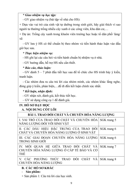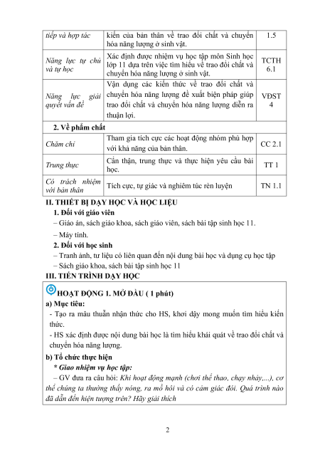 trao đổi chất và chuyển hóa năng lượng diễn ra 4 thuận lợi. 2. Về phẩm chất