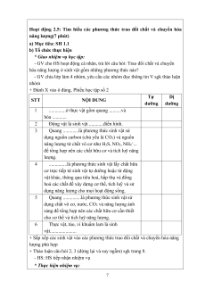 chuyển hóa năng lượng. Lấy được ví dụ minh họa. SH 1.1