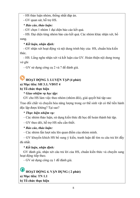 chuyển hóa năng lượng ở sinh vật. (8 phút)
