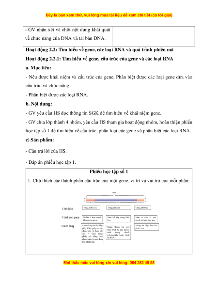 - Nêu được khái niệm và cấu trúc của gene. Phân biệt được các loại gene dựa vào cấu trúc và chức năng.