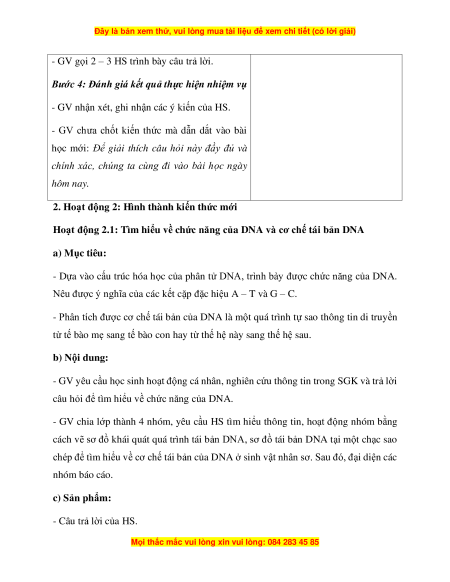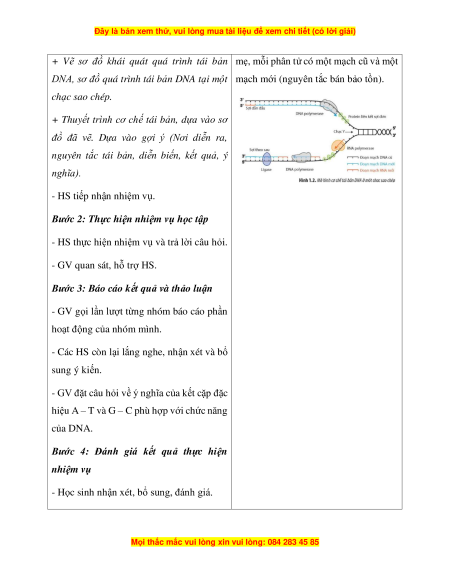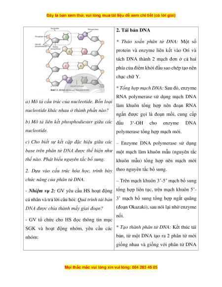 - Phân tích được cơ chế tái bản của DNA là một quá trình tự sao thông tin di truyền