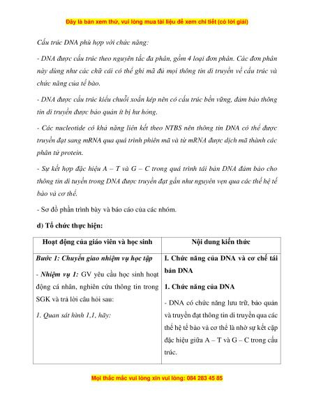 - Dựa vào cấu trúc hóa học của phân tử DNA, trình bày được chức năng của DNA.