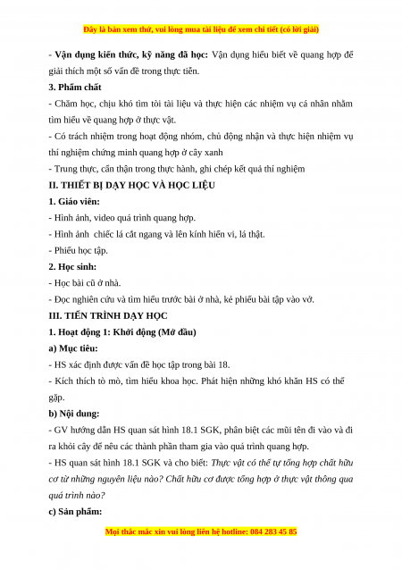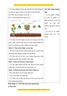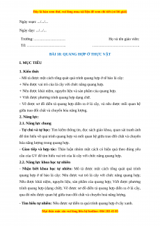 Giáo án Sinh học 7 Cánh diều Bài 18. Quang hợp ở thực vật