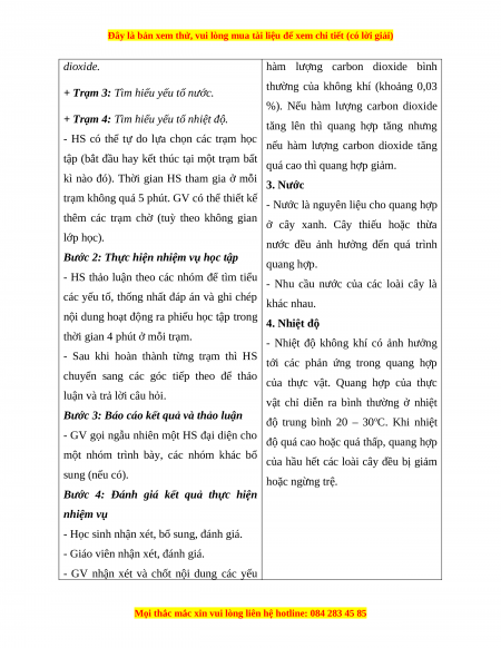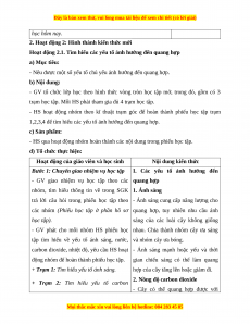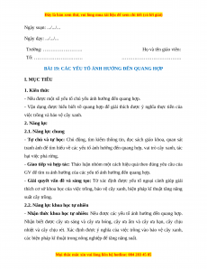 Giáo án Sinh học 7 Cánh diều Bài 19. Các yếu tố ảnh hưởng đến quang hợp