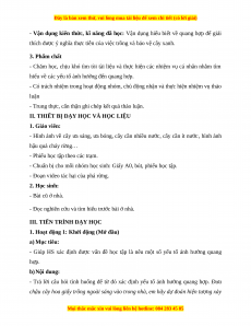 tập tìm hiểu về yếu tố ánh sáng, nước, và nhóm cây ưa bóng.