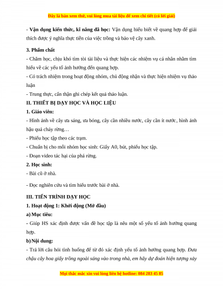 - Nhận thức khoa học tự nhiên: Nêu được các yếu tố ảnh hưởng đến quang hợp.