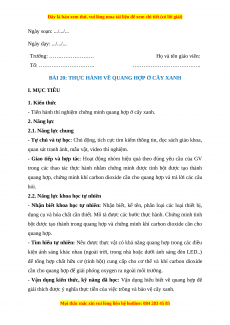 Giáo án Sinh học 7 Cánh diều Bài 20. Thực hành về quang hợp ở cây xanh