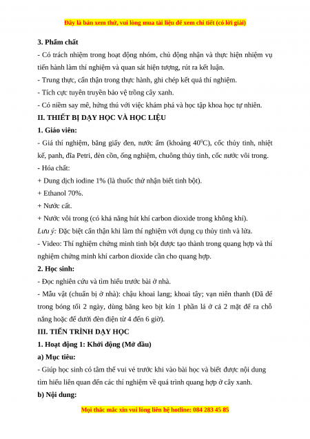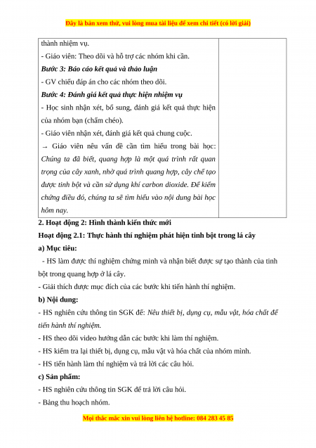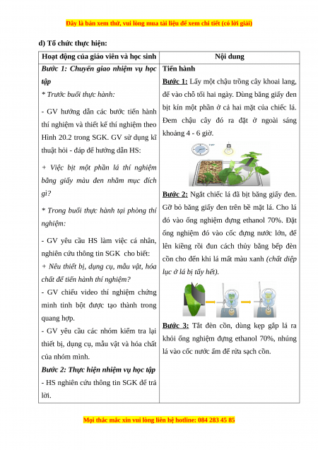 - Giải thích được mục đích của các bước khi tiến hành thí nghiệm. b) Nội dung: