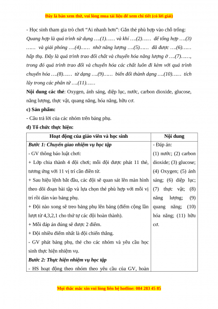 tương ứng với 11 vị trí cần điền từ. (4) Oxygen; (5) ánh