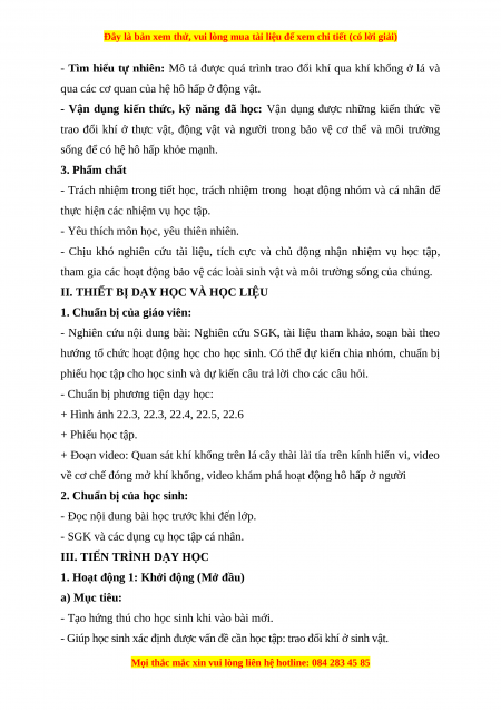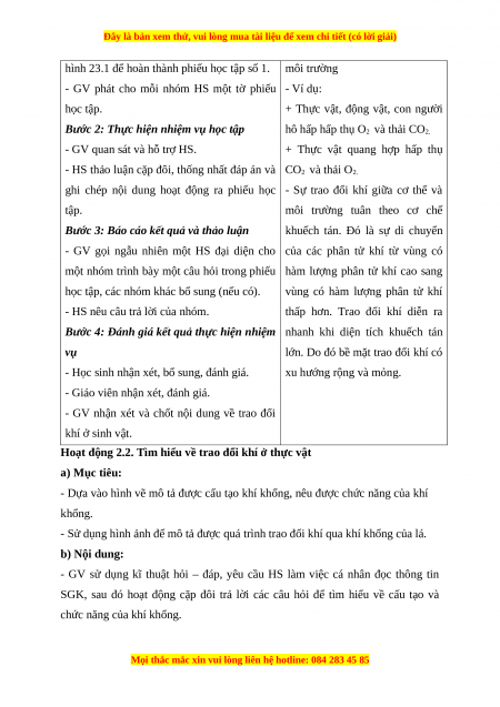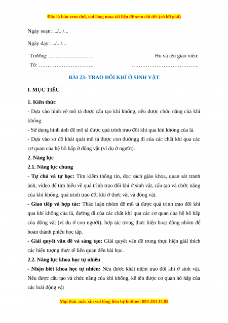 Giáo án Sinh học 7 Cánh diều Bài 23. Trao đổi khí ở sinh vật