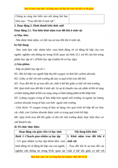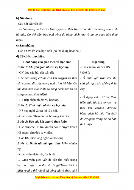 - Nêu được khái niệm, cơ chế của sự trao đổi khí ở sinh vật. b) Nội dung: