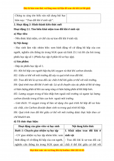 Hoạt động 2.1. Tìm hiểu khái niệm trao đổi khí ở sinh vật a) Mục tiêu:
