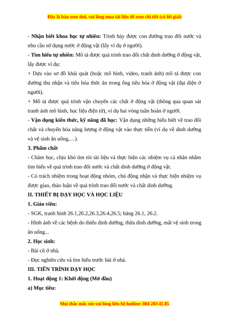 - Trình bày được con đường trao đổi nước và nhu cầu sử dụng nước ở động vật (lấy ví dụ ở người). b) Nội dung: