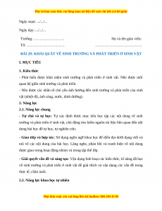 Giáo án Sinh học 7 Cánh diều Bài 29. Khái quát về sinh trưởng và phát triển ở sinh vật