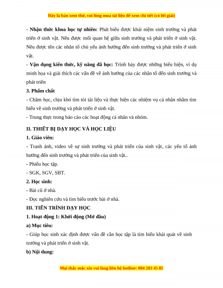 - Nhận thức khoa học tự nhiên: Phát biểu được khái niệm sinh trưởng và phát