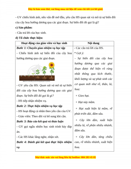 của cây hoa hướng dương qua các giai đoạn. Sự biến đổi đó gọi là gì?