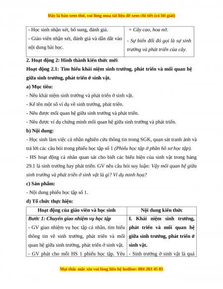 - Nêu được ví dụ chứng minh mối quan hệ giữa sinh trưởng và phát triển. b) Nội dung: