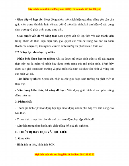 - Thực hành quan sát và mô tả được sự sinh trưởng, phát triển ở một số thực vật.