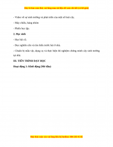 những hiểu biết ban đầu về sinh trưởng và phát triển ở thực vật. b) Nội dung: